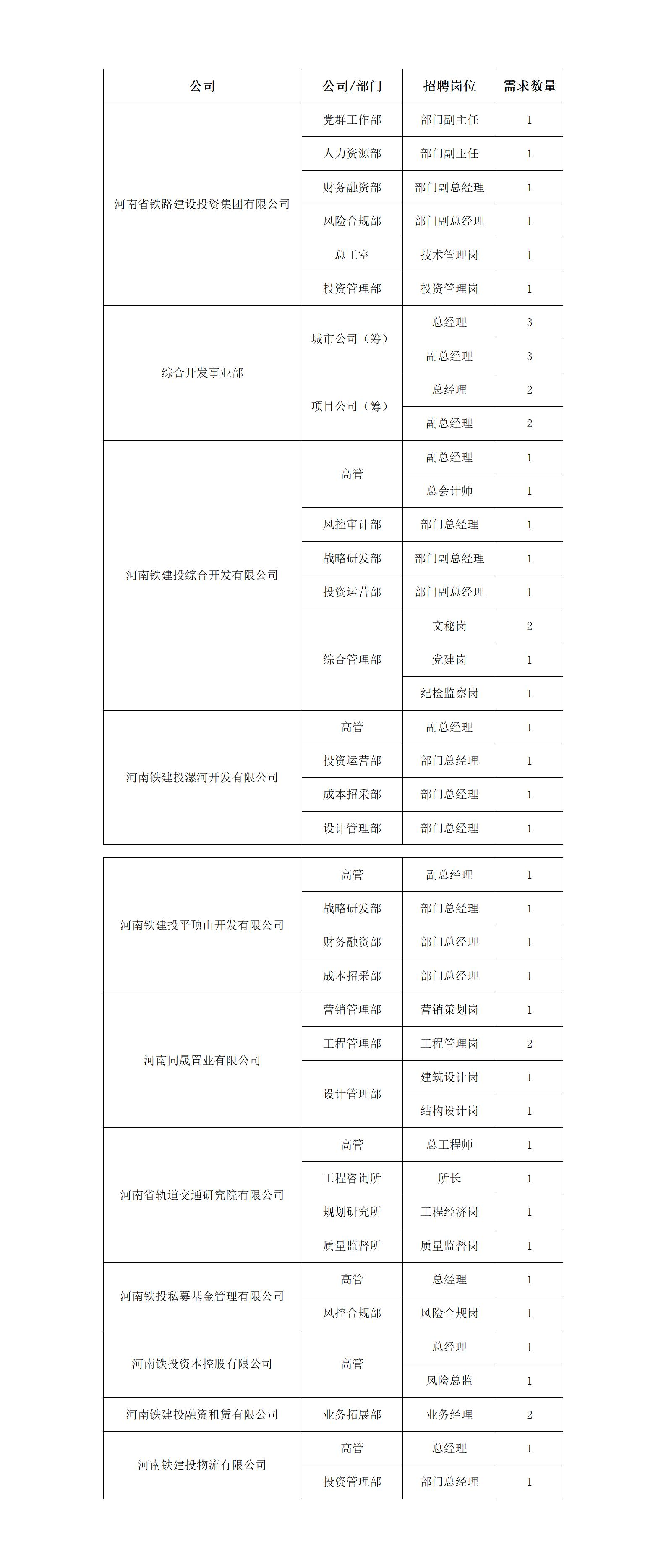 (七)本次公開(kāi)招聘公告未盡事宜,最終解釋權(quán)歸河南鐵建投集團(tuán)所有。